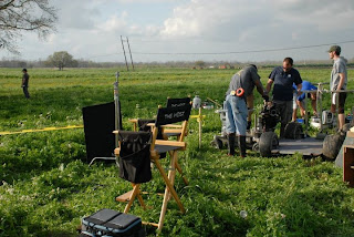 Это точно съемочная площадка фильма "Гостья", потому что мы видим режиссерские стулья с радующими нам надписями названия фильма.
